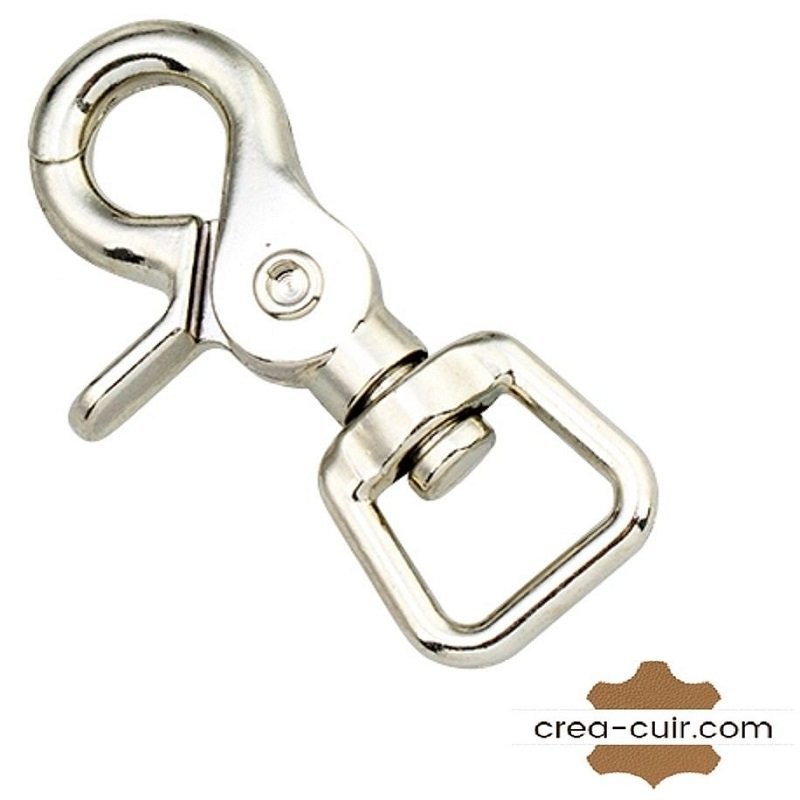 Mousqueton à gâchette en acier nickelé. Boucle de 16mm de largeur (largeur pour le passage de la sangle).