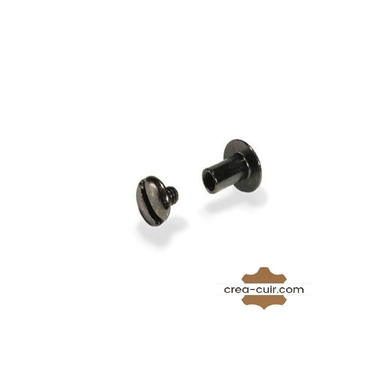 Vis chicago en acier finition noir. Lot de 10 pièces. Permet de rattacher 2 pièces de cuir, sangles de façon non définitive.