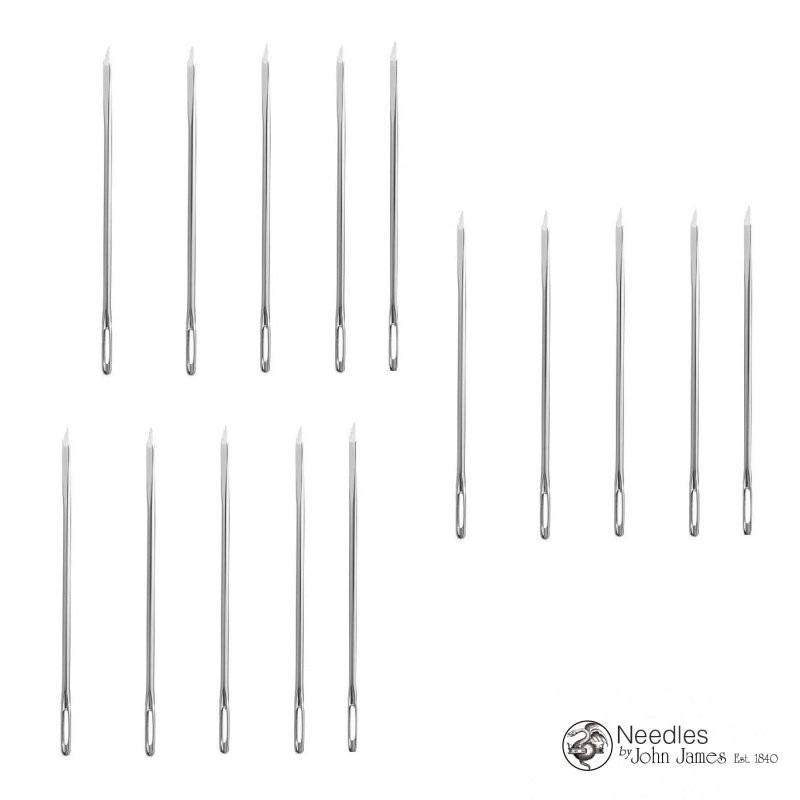 Aiguilles droites aiguisées à pointe triangulaires pour la couture directe du cuir, 3 lots de 5 aiguilles.