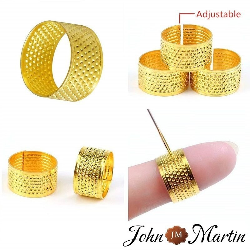 Lot de 3 anneaux dès à coudre en cuivre doré avec taille ajustable. Ils s'adaptent confortablement à votre doigt.