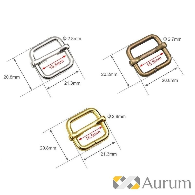 Dimensions extérieures : 21x21mm. Diamètre : 2.7 à 2.8mm. Idéal pour le réglage de la longueur d'une sangle, lanière ou bandoulières en cuir ou tissus.