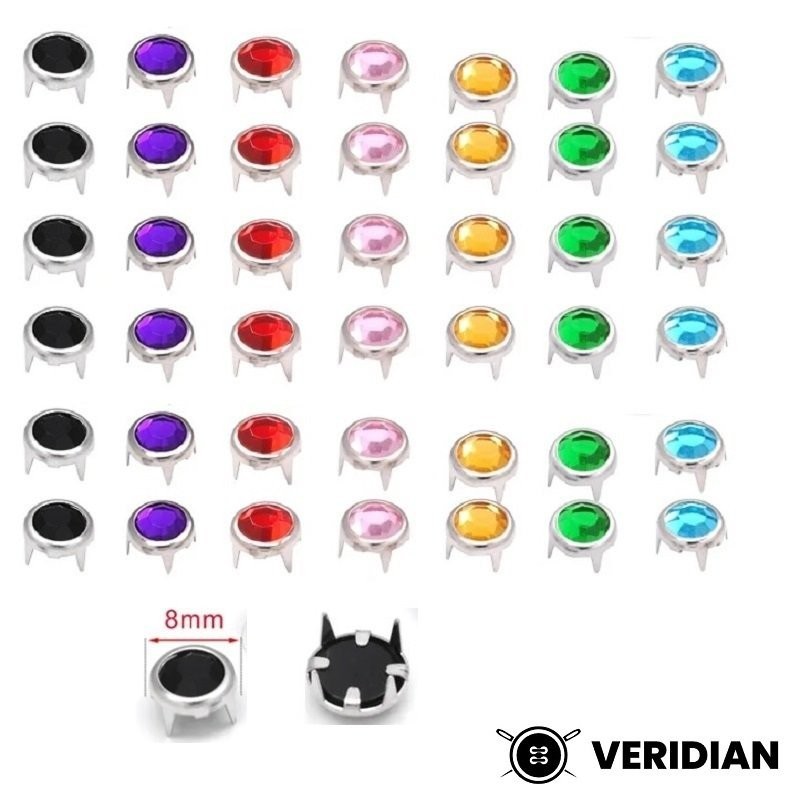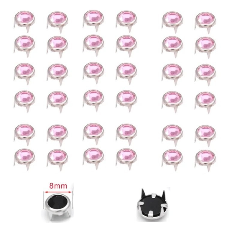 Décoration à griffe pour orner vos articles en cuir. Lot de 10 pièces de 8 mm de diamètre. Plaqué nickel. Fixation par 4 griffes de 3mm traversant le cuir.