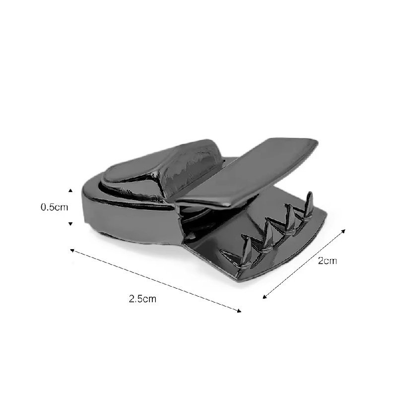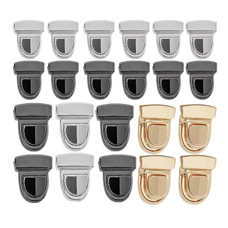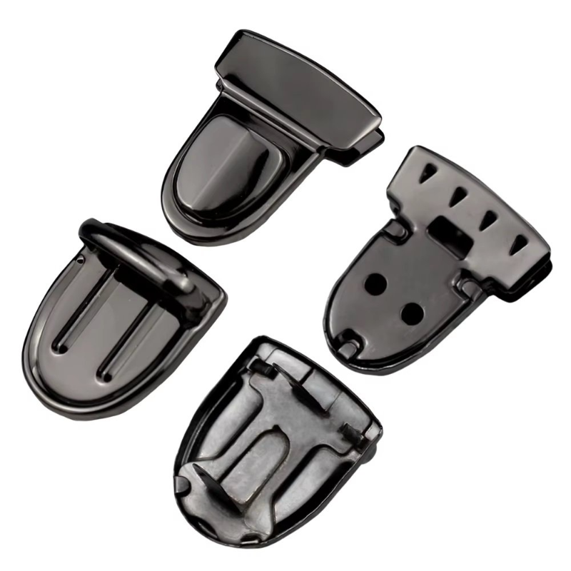 Fermoir tuck type cartable, de couleur argent, laiton ou noire. Fixation par pattes et griffes. Largeur 20mm x 25mm.
