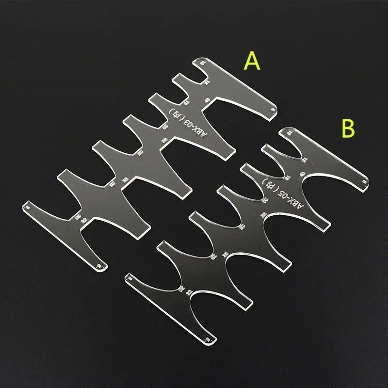 Réalisé en acrylique avec film de protection, ce gabarit permet de tracer ou découper directement votre pointe de ceinture. La fabrication en acrylique et l'épaisseur de ce gabarit permet une excellente longévité dans le temps. Modèle professionnel. Avant utilisation, ôtez le film protecteur en kraft.