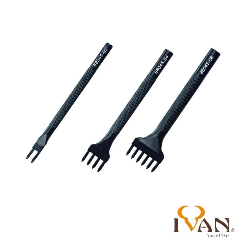 Griffe de couture à frapper, à 2, 4 et 6 pointes diamants (Losange) de 2mm de largeur et un espacement de 3mm entre les points de couture soit un entraxe de 5mm. Permet de percer le cuir rapidement et proprement avant la couture manuelle du cuir.