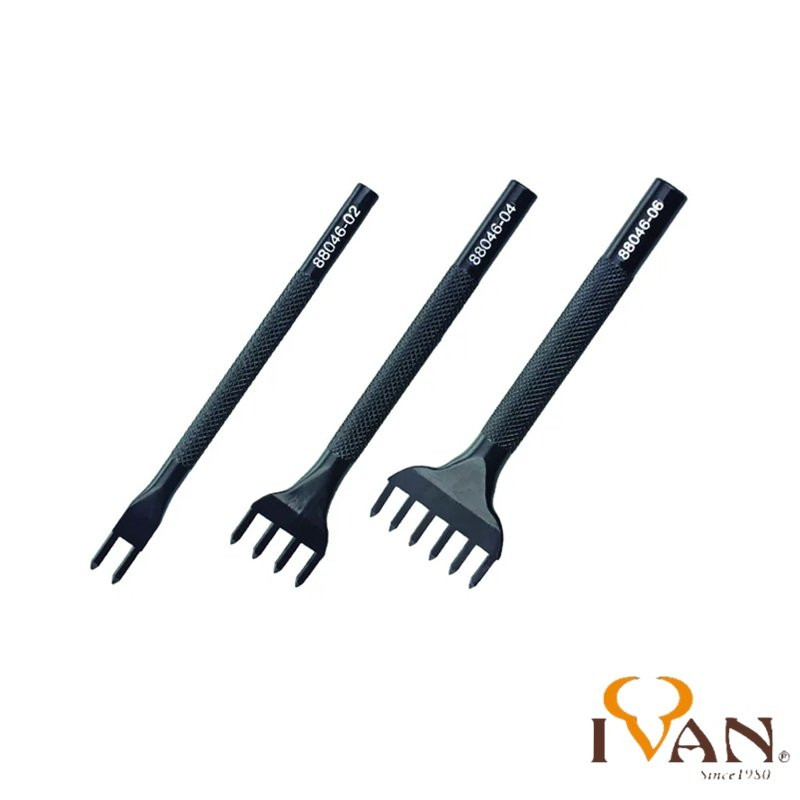 Griffe de couture à frapper, à 2, 4 et 6 pointes diamants (Losange) de 2mm de largeur et un espacement de 4mm entre les points de couture soit un entraxe de 6mm. Permet de percer le cuir rapidement et proprement avant la couture manuelle du cuir.