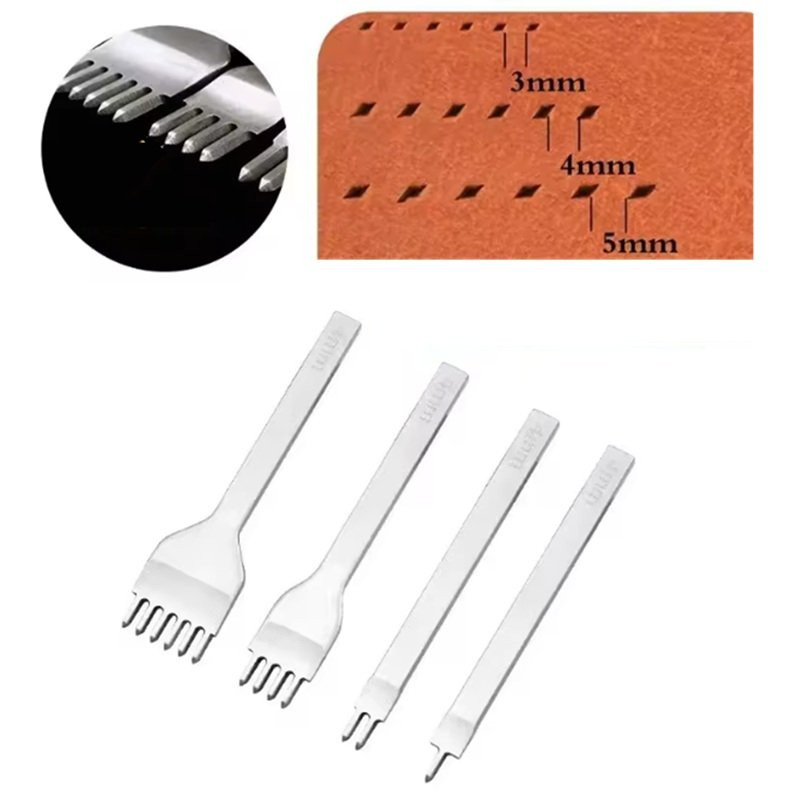 Ce set de 4 griffes de couture à frapper est l'outil indispensable pour tout maroquinier, amateur ou professionnel, souhaitant réaliser une couture main (point sellier) d'une précision irréprochable. Taille 4mm.