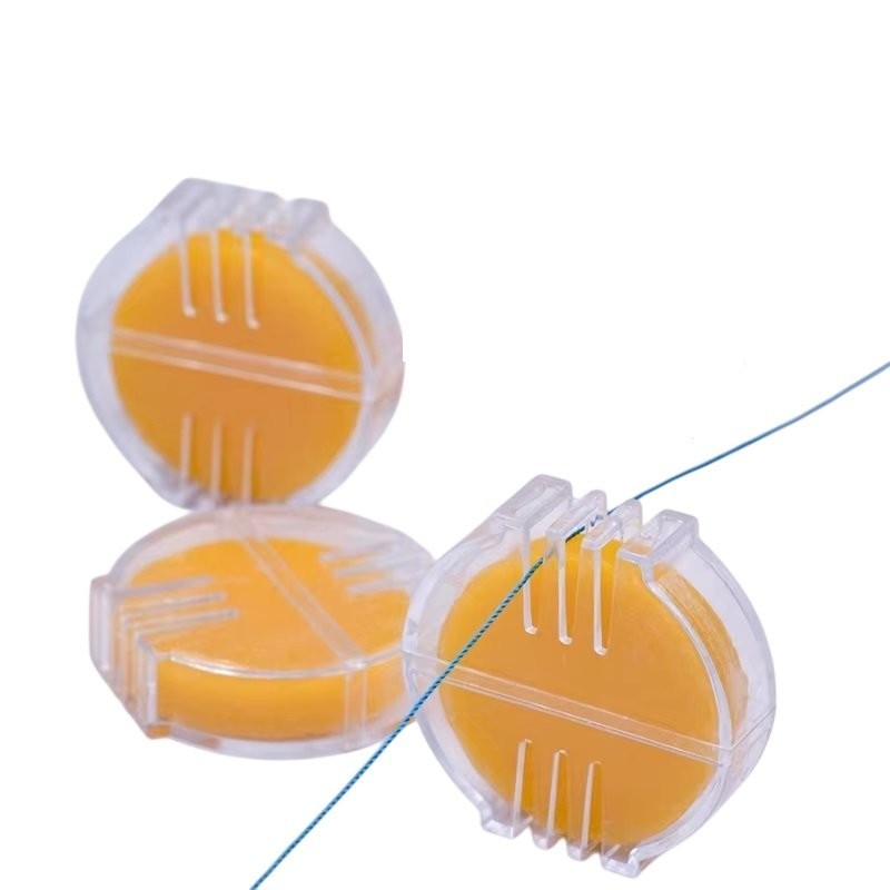 La cire avec conditionneur de fil est un pain de cire pure d'abeille dans une boîte en plastique transparente en deux parties ayant sur les deux côtés trois ouvertures en forme de fente. en tirant le fil à travers une des rainures, il est revêtu d'une fine couche de cire et devient ainsi plus flexible et stable, les fils torsadés ne s'effiloche plus, et le fil glisse en douceur à travers le cuir et n'est ni soumis aux frottements ni noué lors de la couture.