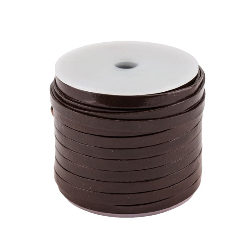 Bobine de lacet de cuir plat brun de 5mm de largeur, 1mm d'épaisseur et 25mètres de longueur d'un seul tenant.