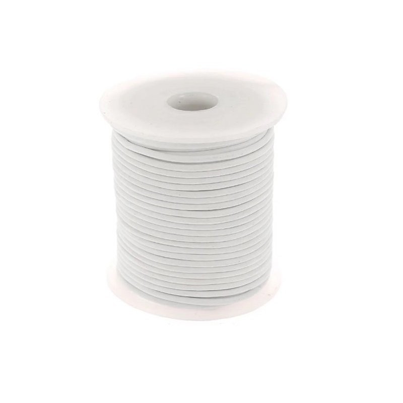 Bobine de lacet de cuir de buffle rond blanc de 2mm de diamètre et 25 mètres de longueur d'un seul tenant.