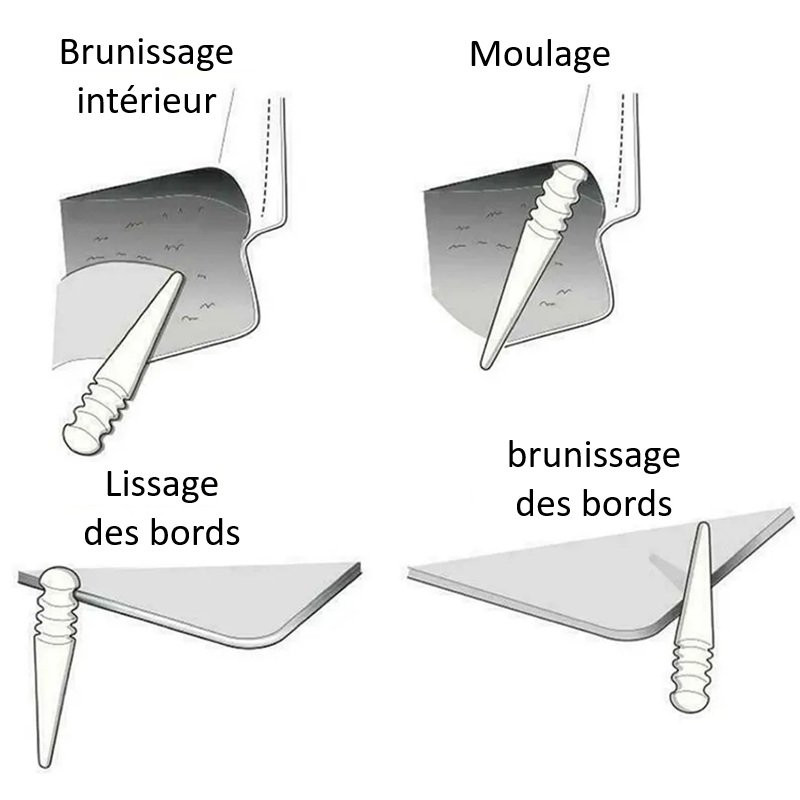 Le lissoir à bords, également connu sous le nom de brunissoir est un outil essentiel dans le travail du cuir, utilisé pour lisser et polir les bords du cuir après la coupe.