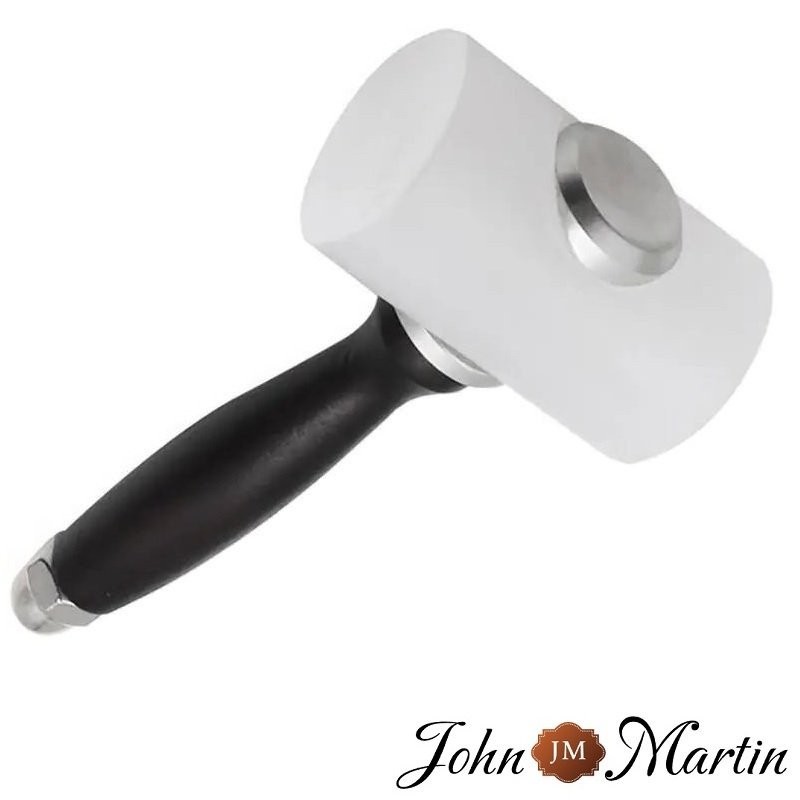Maillet à tête de frappe en nylon très résistant et anti rebond. Longueur manche 143mm et tête de 49 x 80mm de diamètre et d'un poids de 350gr. Ce maillet permet une précision et un confort de frappe optimisé. Marque John Martin.
