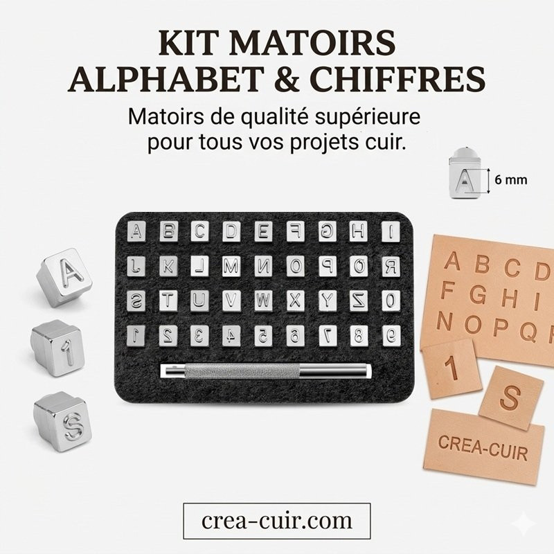 Personnalisez vos créations en cuir avec professionnalisme grâce à ce kit complet de matoirs. Que vous souhaitiez marquer un nom, une date ou des initiales, ce coffret est l'outil indispensable pour signer vos travaux de maroquinerie : sacs, ceintures, porte-cartes ou bracelets.