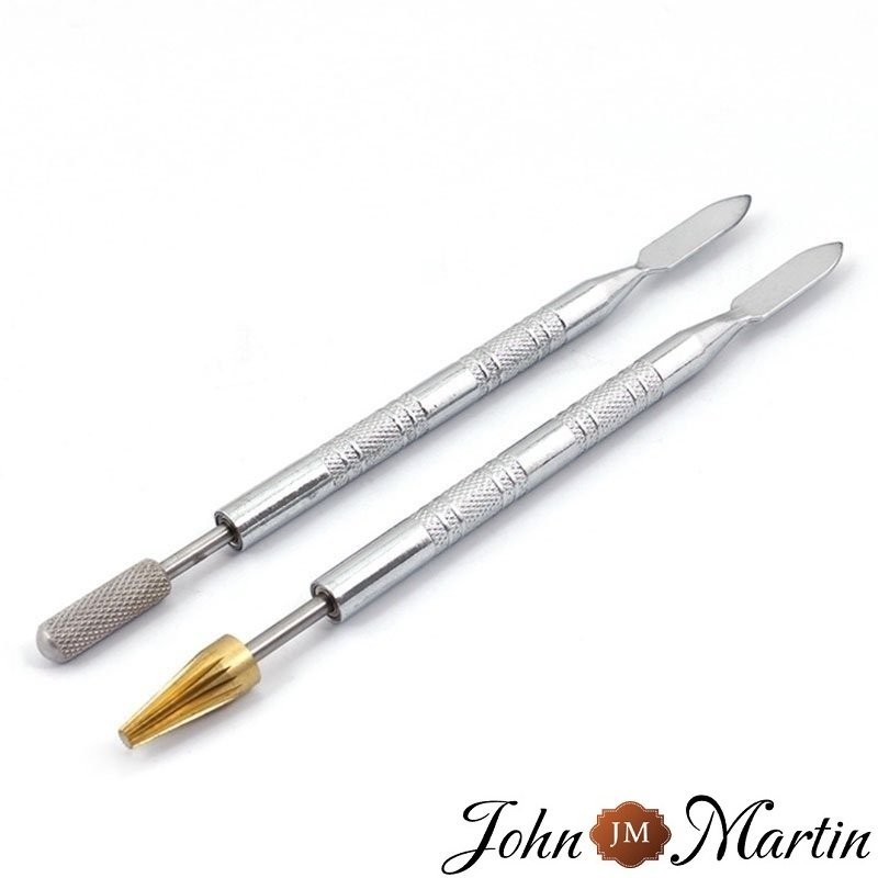 Ces stylos roller applicateurs avec leurs pointes striées en laiton ou en acier vous permet d'apposer facilement et rapidement la teinture de tranche sur les bords du cuir et sur de grandes longueurs (Ceintures, sacs, anses, sangles...). La pointe opposée s'utilise pour l'application de la colle.