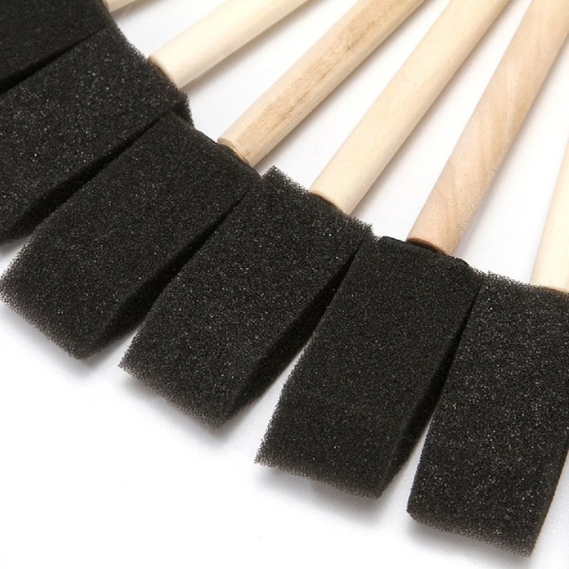 Brosses en éponge haute densité pour une application précise de produits à base d'eau (teintures, vernis, colles). Absorption optimale, réduction des gouttes, poignée en bois durable et nettoyage facile à l'eau.