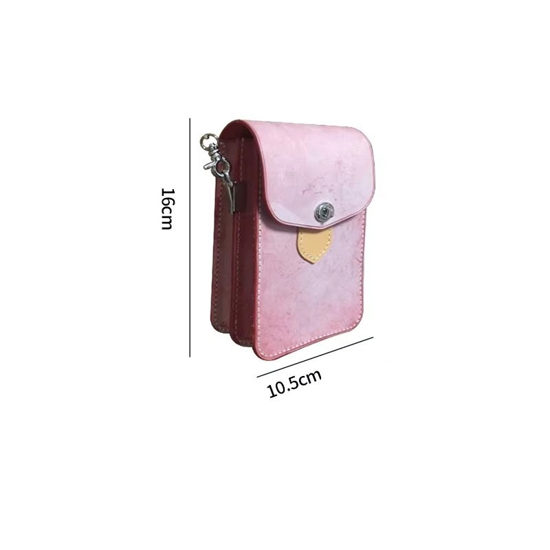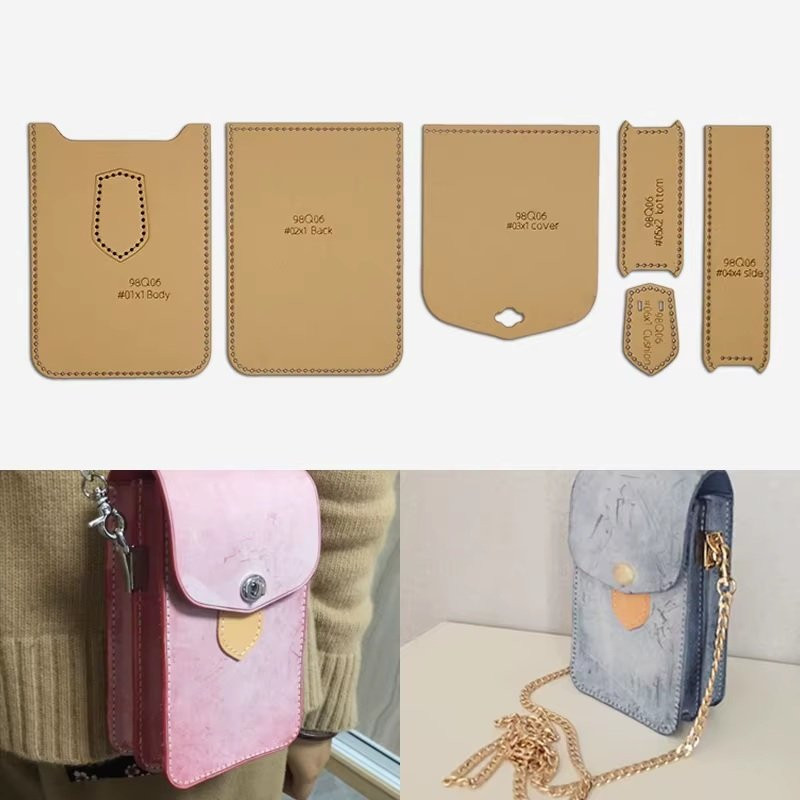 Patron en taille réelle, réutilisable en kraft d'une petite sacoche en cuir, idéale pour un smartphone par exemple. Dimensions de la sacoche : 16 x 10,5cm