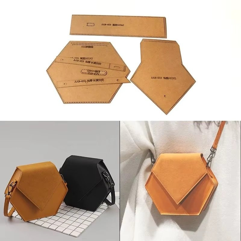 Patron en taille réelle, réutilisable en kraft de sac à main en cuir. Dimension du sac : 21 x 11 x 6.5cm