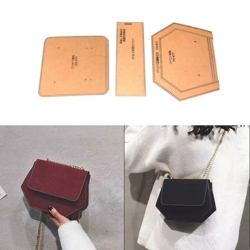 Patron en taille réelle, réutilisable en kraft de sac à main en cuir. Dimension du sac : 22 x 15.5 x 6.5cm