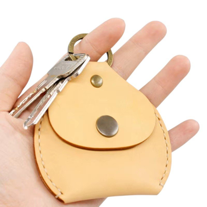 Patron en taille réelle, réutilisable en carton kraft, d'un porte monnaie ou jeton en cuir. Dimensions : 8.5 x 8.3cm.
