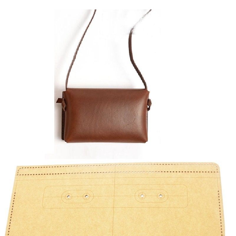 Patron en taille réelle, réutilisable en kraft de sacoche bandoulière en cuir pour passeport, papiers, téléphone.... Dimension du sac : 17 x 11 x 3cm.