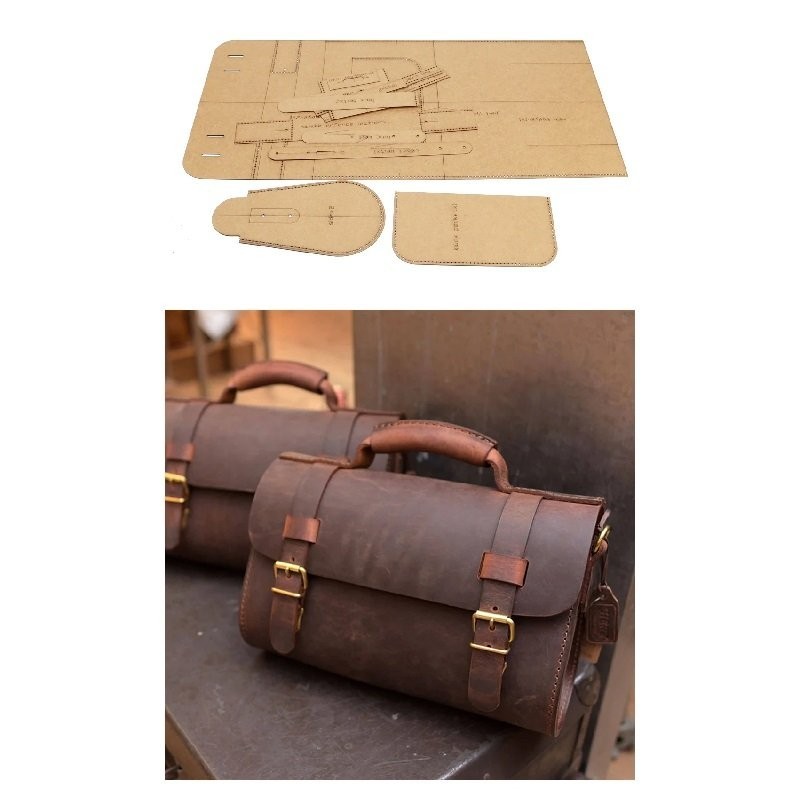 Patron en taille réelle, réutilisable en kraft d'un sac forme cartable en cuir. Dimension du sac : 26 x 20 x 10cm.