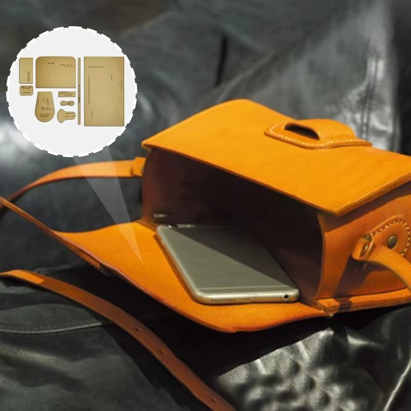Patron en taille réelle, réutilisable, au format PDF A3 d'une sacoche en cuir. Dimension du sac : 17 x 24 x 8cm. Fichier PDF A3, en taille réelle à imprimer.