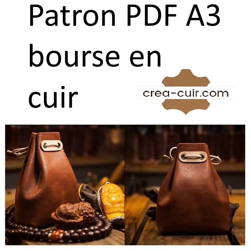 Patron en taille réelle, réutilisable, d'une bourse en cuir. Dimensions : 16 x 6 x 4cm. Fichier PDF A3, en taille réelle, à imprimer au format A3.