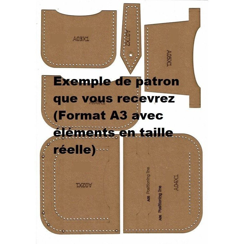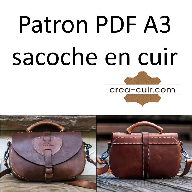 Patron en taille réelle, réutilisable, au format PDF A3 d'une sacoche en cuir. Dimension de la sacoche : 27 x 17 x 7cm. Fichier PDF A3, en taille réelle à imprimer.
