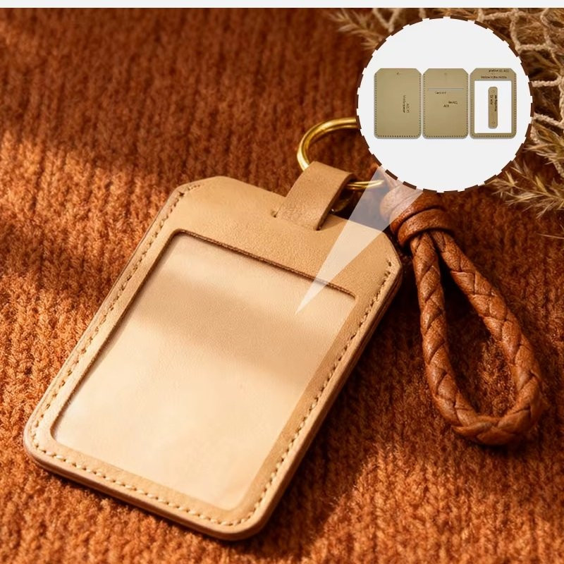 Patron en taille réelle, réutilisable en papier, d'un étui porte étiquette ou badge en cuir. Dimension de la pochette : 12 x 8cm. Eléments en taille réelle.