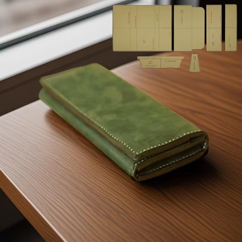 Patron en taille réelle, réutilisable, d'un portefeuille en cuir. Dimension de l'étui : 20 x 9cm. Elément en taille réelle.