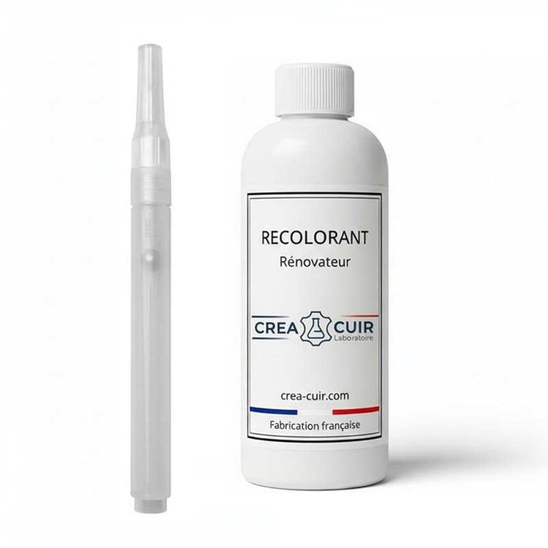 Le Recolorant rénovateur cuir est un produit de soin et de rénovation conçu pour redonner vie aux articles en cuir qui ont perdu de leur couleur, présentent des taches ou des éraflures. C'est une solution efficace pour éviter de jeter des objets en cuir encore fonctionnels mais visuellement abîmés, comme des canapés, des sièges de voiture, des vestes ou des sacs à main. 15 couleurs proposées. Ce recolorant pour cuir est un produit de Créa-Cuir Laboratoire.