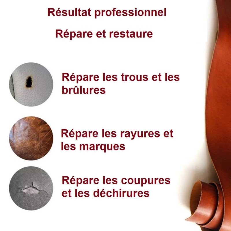 Si vous ne trouvez pas la teinte de la crème correspondante à votre cuir, utilisez la crème réparatrice de couleur blanche et, après réparation de votre cuir, appliquez une teinture de même couleur de votre cuir.