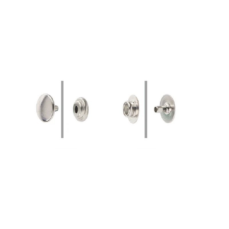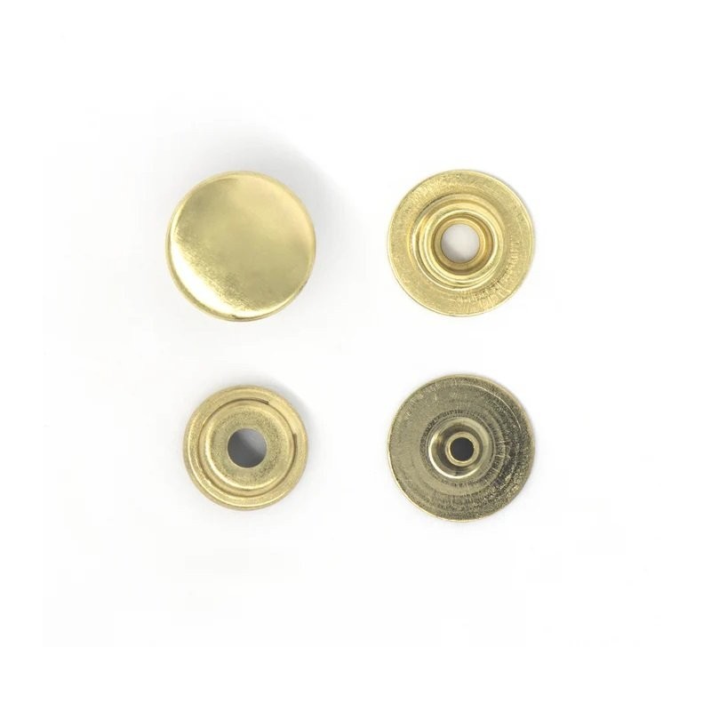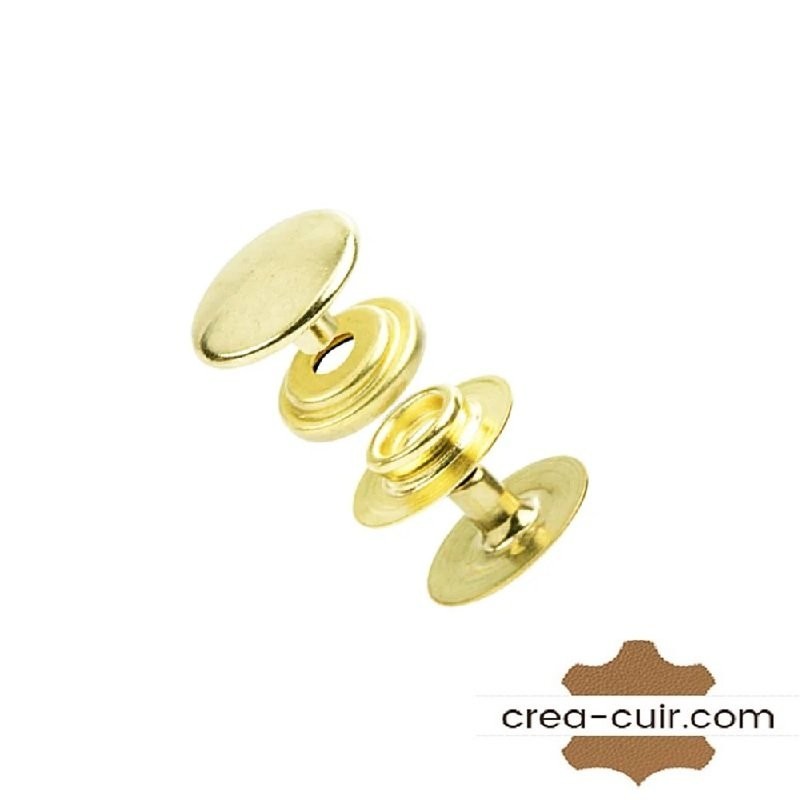 Boutons pression acier laitonné x 10 pièces d'un diamètre de 13mm. Pour cuir de 1 à 3mm. Nécessite le pose bouton, le support pour pose bouton et un emporte pièce 3mm.