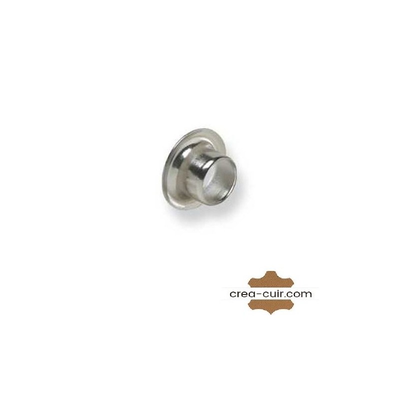 100 œillets nickelé de 4mm de diamètre intérieur et 6.3mm de diamètre extérieur. Nécessite le pose œillet et un emporte pièce 4mm.