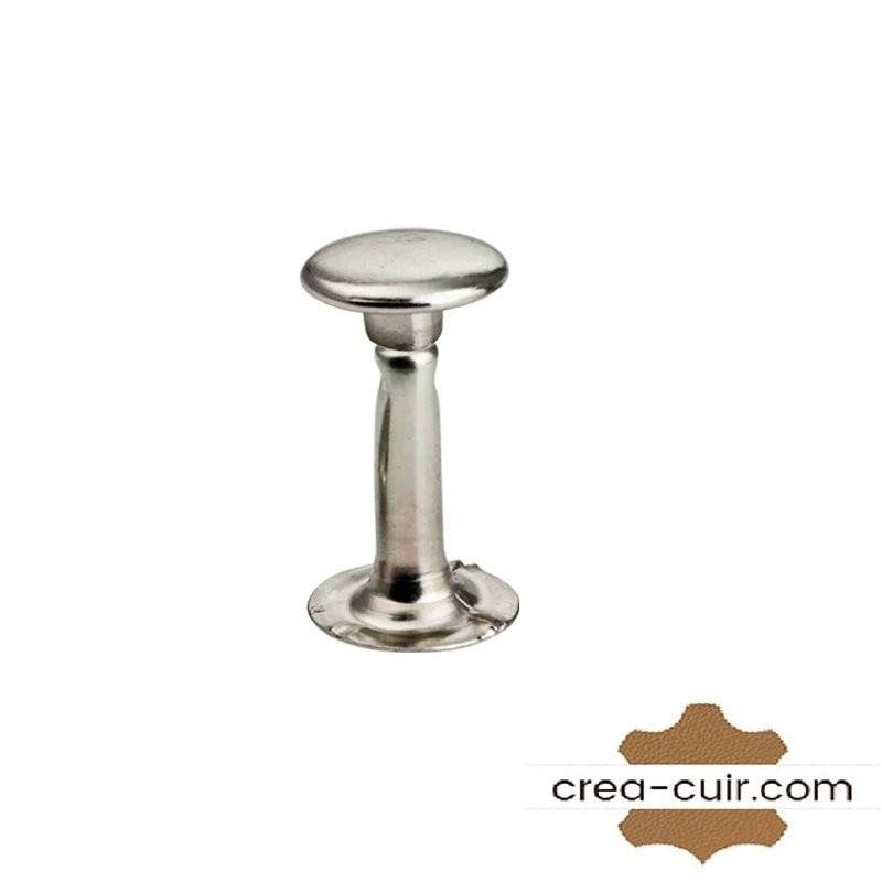 100 rivets en acier nickelé (Largeur x longueur : 8 x 13mm). Nécessite un pose rivets, un support pose rivets et un emporte pièce 3mm. Convient à une épaisseur de cuir de 5 à 8mm.